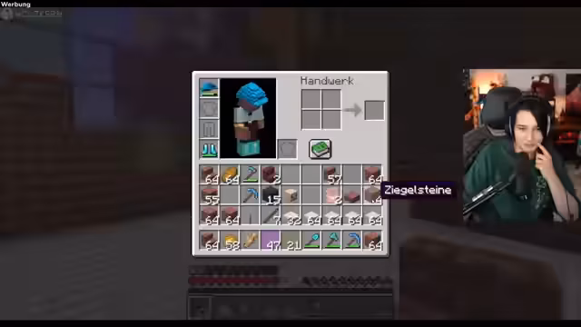 06:16:41Für den weiteren Bau entscheidet sich der Streamer für die Errichtung eines Ofens, welcher mit einem Kamin verbunden werden soll. Er benötigt dafür spezielle Elemente wie Stein-Treppen, um eine runde Form zu schaffen. Nachdem die Grundkonstruktion steht, beginnt er mit der Auswahl des Materials für den Ofen. Er probiert verschiedene Materialien aus, darunter Lavablöcke und Netherrack, um das für den visuellen Effekt passende Element zu finden. Bei der Planung fällt ihm auf, dass er für den Ofenbrennstoff auch spezielle Materialien benötigt.