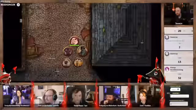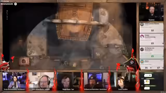 05:15:04Nachdem die Kämpfe auf dem Deck im Gehen scheinen, wird der Fokus auf das Erkunden des Unterdecks verlagert. Ein Charakter mit tierischer Gestalt nutzt seine kleinere Form, um unbemerkt eine Kombüse zu betreten, wo er auf einen ahnungslosen Halbling-Koch trifft. Durch gezielte Gesten und Kommunikation werden die Helden weitergeleitet, um die eigentliche Mission fortzusetzen.