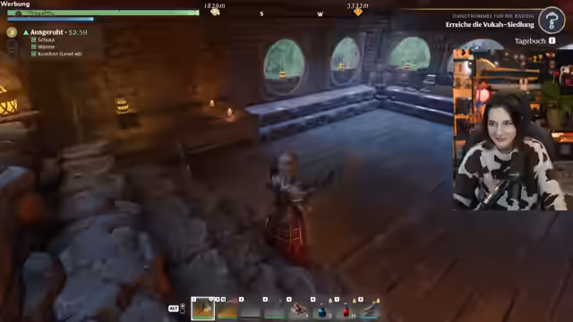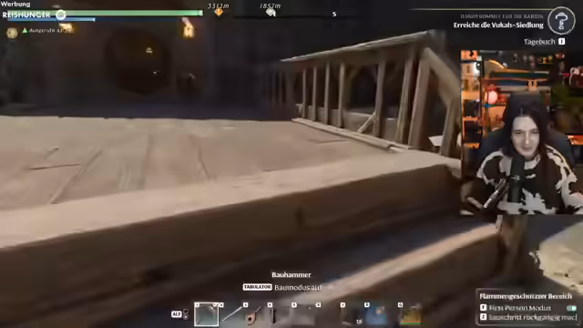 02:31:01Nachdem das Wassersystem-Projekt auf Ressourcenmangel stößt, konzentriert sich der Streamer auf die Suche nach Zinn, das er für seinen nächsten Schritt benötigt. Dabei begegnet er neuen Quest-Aufträgen im Spiel, unter anderem von einer Alchemistin, die einen schwarzen Kessel sucht, und einer Jägerin, die nach Gerbereirezepten sucht. Er erzählt auch von Anekdoten über Spinnenbisse bei Bananen und reflektiert über den Ursprung des Wortes 'Serialien' für Müslisorten. Das Gespräch wechselt zwischen Gameplay, Quest-Lore und alltäglichen Chat-Themen.