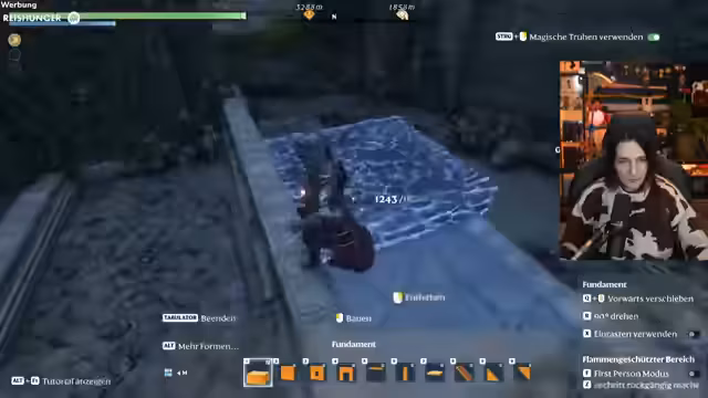 03:06:09Der Streamer beschäftigt sich intensiv mit dem Bau einer Wasseranlage und einem Keller. Er stößt auf zahlreiche Herausforderungen, wie Lecks, undichte Stellen und das unerwünschte Eindringen von Wasser. Versuche, die Kellerwände zu reparieren und zu verschließen, scheitern an Lücken im System, die zu Wasserfällen und Überflutungen führen. Der Prozess ist frustrierend und zeitaufwändig, da der Streamer ständig neu aufsetzen muss und das Wasser ungehindert von oben einströmt.
