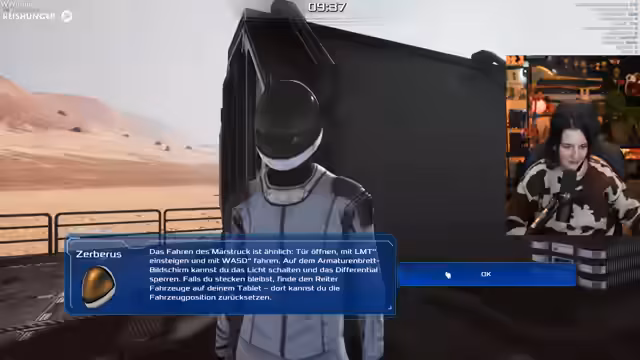 08:55:51Nach einer technischen Verwirrung mit der Steuerung widmet sich der Streamer wieder intensiv dem Spiel "Occupy Mars". Er absolviert die Einführungs-Ausbildung und erhält erste missionsrelevante Aufgaben wie das Reparieren von Fahrzeugen. Die durchdachten und realistischen Details des Spiels, wie die notwendige Wartung von Werkzeugen und die komplexe Steuerung von Drohnen, werden hervorgehoben und machen den Prozess des Einarbeitens in die Mars-Kolonie nachvollziehbar und spannend.