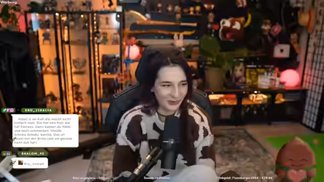 01:17:55Nach einem langen Abschnitt ernster Themen lenkte der Streamer das Gespräch wieder in eine lockere und humorvolle Richtung. Ein zentrales Thema war sein auffälliger Pullover, über den sich der Chat lustig machte, wobei das Spektrum von Kompliment bis zu inszenierter Beleidigung reichte. Im Zuge dieser Interaktion gratulierte der Streamer einem Chatmitglied namens Flens herzlich zum Geburtstag und spielte eigens dafür einen Geburtstagssong, was eine emotionale und persönliche Stimmung im Stream erzeugte. Anschließend kündigte er den Start des eigentlichen Spiels an.