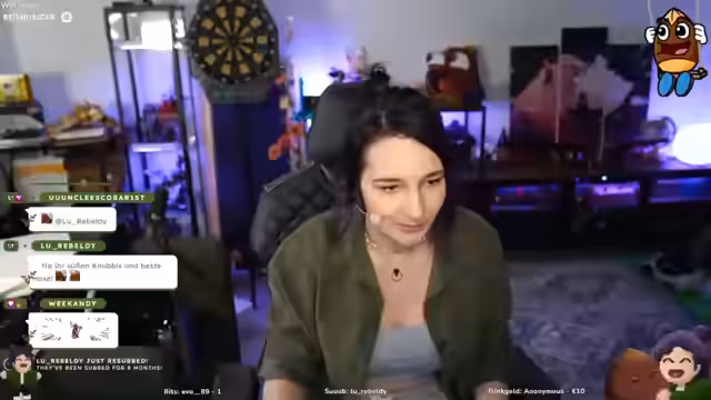 00:09:33Der Streamer interaktiv mit dem Chat und begrüßt regelmäßig Zuschauer. Er erwähnt verschiedene Aktionen wie Follows, Subs und Geschenke. Es gibt Diskussionen über T-Shirts, die den Streamern gefallen könnten, und der Streamer reagiert auf Kommentare und Fragen des Chats.