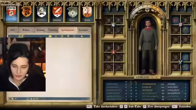 09:19:34Heinrich versucht, eine Rüstung zu beschaffen, um die Burg verlassen zu können. Er spricht mit einem Wächter, der ihm den Tipp gibt, sich als Thallenberger Wachmann zu verkleiden. Heinrich sucht nach einem Händler, um Dietriche zu kaufen, wird aber zunächst nicht fündig. Schließlich entdeckt er einen Händler und versucht, Dietriche zu erwerben, muss aber feststellen, dass er nicht genug Geld hat. Er versucht, den Preis zu feilschen, verschlechtert aber dadurch seinen Ruf beim Händler. Heinrich wird von einem Mann angesprochen, der ihn um Hilfe bittet, die Burg zu verlassen. Der Mann verrät ihm, dass er eine Rüstung benötigt, um unerkannt passieren zu können. Heinrich versucht, ein Schloss zu knacken, um an die Rüstung zu gelangen, scheitert aber zunächst. Bei dem Versuch, eine Leiter hinunterzusteigen, verletzt sich Heinrich schwer und verblutet. Die Streamerin kommentiert frustriert die Schwierigkeit des Spiels und die fehlenden Speichermöglichkeiten.