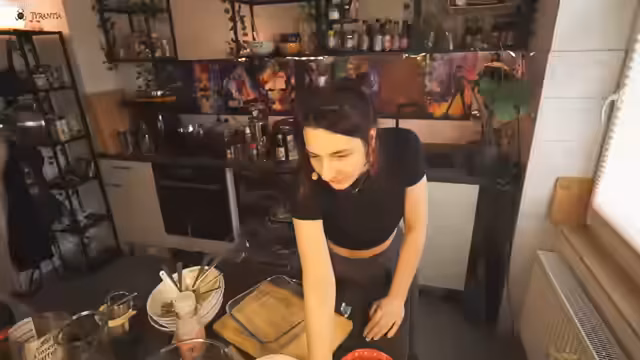 00:40:56Es wird ein Kochtest mit neuen Produkten von Reishunger angekündigt. Die Streamerin möchte Käse-Rahmennudeln probieren, die sie in Wasser mit einer Gewürzmischung kochen will. Während des Kochvorgangs kommt es zu einem unerwarteten Problem: das Wasser überkocht stark und geht fast über, sodass ein Großteil der Nudeln verloren geht. Die verbleibenden Nudeln werden als 'sipschig' und sehr käsig beschrieben, und ein Gutscheincode für 10% Rabatt auf Reishunger-Produkte wird geteilt.