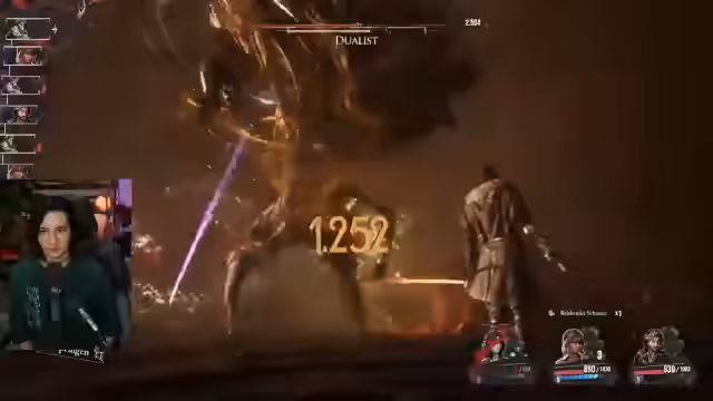 08:07:18Der Streamer startet in 'Claire Obscura' einen Bosskampf, den er für besonders 'obscure' und herausfordernd hält. Der Kampf gestaltet sich äußerst schwierig, da der Boss einen Statuseffekt namens 'Invertiert' erzeugt, der Heilung in Schaden umwandelt. Mehrere Versuche sind nötig, um den Boss nach seiner zweiten Phase zu besiegen, wobei der Streamer die Mechaniken erst langsam versteht und anwendet.