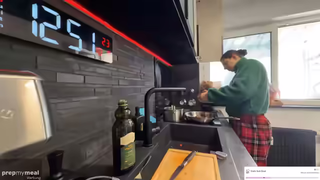 03:05:31Nach anfänglichen Schwierigkeiten mit der Kameraeinstellung und der Beleuchtung, die durch die Nutzung des iPhones als Stream-Kamera entstanden, begann die Zubereitung des einfachen und schnellen Gerichts: Knoblauch-Chili-Pasta mit Thunfisch (Knobi, Chili, Pasta, Tonno). Die genaue Kochmethode wurde detailliert beschrieben, wobei betont wurde, dass Knoblauch und Chili nur kurz im heißen Olivenöl geschwenkt werden sollen, um nicht zu braten, bevor die Nudeln hinzugefügt werden. Die Streamerin erklärte, dass sie viel Knoblauch liebe, auch weil es vielleicht die Leute ein bisschen abwehre. Nach dem Essen stand die Vorbereitung für den Besuch des Cannstatter Wasen ('Vest') auf dem Plan. Als erste Stärkung auf dem Fest wurde der Kauf einer Schokobanane angekündigt. Die Mahlzeit wurde als sehr lecker und stärkend beschrieben, bevor es mit dem Anziehen weiterging.