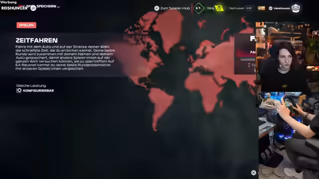 02:13:20Zu Beginn des Stream-Abschnitts konzentriert sich der Streamer auf das Fahren eines Rennsimulators, wobei er sich über seine mangelnde Konzentration und die Schwierigkeiten beim Fahren ohne Hilfslinen beschwert. Er versucht, Streckenmerkmale und Boxenstopps zu memorieren, was ihm aber nur teilweise gelingt. Gleichzeitig kämpft er mit technischen Problemen, darunter ein instabiler Mikrofonanschluss und die Kalibrierung seines Lenkrads. Die Navigation durch die unübersichtlichen Menüs des Spiels gestaltet sich für ihn als besonders herausfordernd und anstrengend.