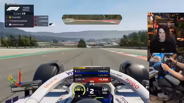 01:39:57Der Streamer beginnt seine Rennen im Formel-1-Spiel. Er konfiguriert das Auto, schaltet Hilfen wie die Ideallinie aus und wählt eine automatische Schaltung. Er wählt den Streckenmodus 'Zeitfahren' und startet seine erste Runde auf der umgekehrten Strecke in Österreich. Es folgen anfängliche Schwierigkeiten, er verliert einen Reifen und zeigt Unwissen über Boxenstopps und Rennstrategien. Er fühlt sich überfordert und muss die Strecken erst lernen, was zu humorvollen und frustrierenden Momenten im Cockpit führt.