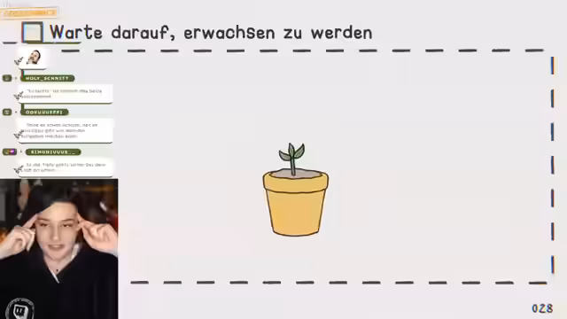 02:22:48Die Unterhaltung beginnt mit persönlichen Anekdoten und humorvollen Beobachtungen. Der Streamer erzählt von einem speziellen Klo-Dirndl, das er trägt, und teilt seine veränderte Wahrnehmung von Alltagssachen wie Backblechen und Auberginen, die er seit Beginn des Streams anders sieht. Ein wiederkehrendes Thema sind die Unterstriche im Chat-Namen, die zu einem lauten internen Gag werden. Der Streamer und das Publikum diskutieren spielerisch über die Anzahl der Unterstriche und etablieren die 'Unterstrichbande' als Running Gag. Parallel dazu gibt es ein interaktives Gefühlstimmungsspiel, bei dem die Zuschauer ihre aktuelle emotionale Verfassung per Zahl im Chat angeben und begründen.