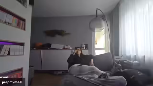 01:01:40Während der Pause vom Spachteln berichtet der Streamer von einem ärgerlichen Vorfall: Ein Nachbar wirft Zigarettenasche von seinem Balkon auf den eigenen, mit Kräutern bepflanzten Balkon, was die Pflanzen schädigt. Er verspricht, das anzusprechen. Anschließend bereitet er sich schnell ein Essen mit PrepMyMeal zu, einem Service für gesunde Mahlzeiten, den er im Stream bewirbt und dessen Produkte er mit viel Lob für Qualität und Geschmack erwähnt.