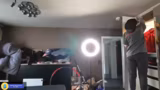 00:34:33Die zweite Hälfte des Streams wird von einem größeren DIY-Projekt dominiert. Der Streamer beginnt damit, einen Einbauschrank im Schlafzimmer zu spachteln. Er erklärt den Prozess des Auftragens, Schleifens und Trocknens des Spachtels und bittet um Geduld, da der Vorgriff zeitaufwendig ist. Technische Probleme wie fehlendes WLAN und Akkustand des Handys werden erwähnt, jedoch nicht thematisiert, um den Arbeitsfluss nicht zu stören.