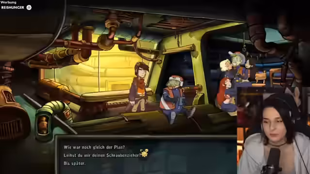05:20:22Der Stream setzt die Auseinandersetzung mit dem Deponia-Teil 'Goodbye Deponia' fort. Die Spielfigur befindet sich im Abflusskanal, einem Teil der Gosse. Der Fokus liegt auf der Interaktion mit neuen Charakteren wie Goon und June sowie der Notwendigkeit, fünf 'Slotty' zu finden, die bei einer Frau im unteren Bereich lagern. Der Protagonist trifft auf einen verdächtigen Mann, der versucht, Babys anzulocken, und denkt über die Zerstörung von Beziehungen nach. Der Dialog enthält viele Running Gags und wiederkehrende Wortwitze, die typisch für die Serie sind.