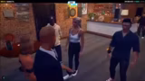 05:58:53Die Polizisten begeben sich in ein Restaurant und interagieren mit den Gästen. Dabei tauchen humorvolle und absurde Sprachneuschöpfungen auf. Die Gespräche sind geprägt von Lachen, neckischen Bemerkungen und der Darstellung von Charakterinteressen, die das alltägliche Leben in der simulierten Stadt zeigen.