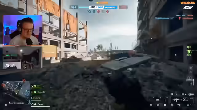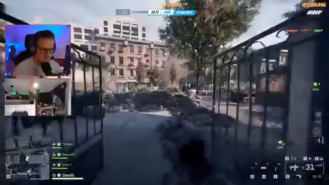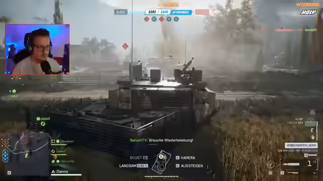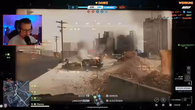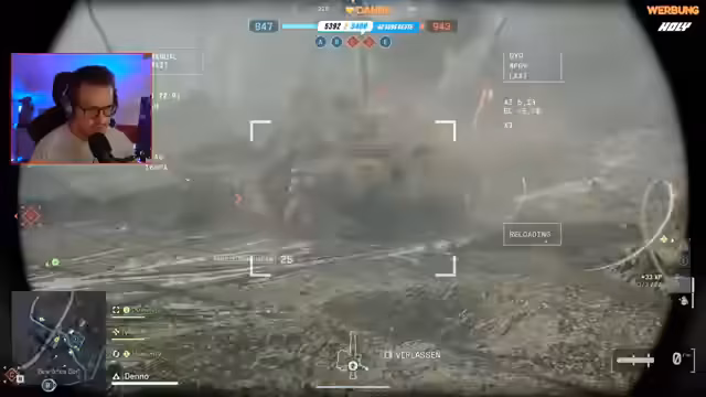 09:59:30Der Streamer ist mitten im actionreichen Kampf von Battlefield 6 verwickelt. Er fährt einen Panzer und stellt fest, dass feindliche Drohnen die Positionen aufklären, was seine Bewegungsmöglichkeiten einschränkt. Trotzdem gelingt es seinem Team, den Punkt A einzunehmen. Der Streamer wechselt seine Rolle, probiert sich als Sniper und ist von der Grafik des Spiels sowie von der überwältigenden Masse an Spielern im beeindruckenden Schlachtfeld beeindruckt.