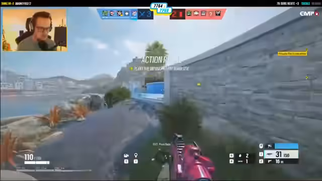10:02:44Zurück im Gameplay von Rainbow Six Siege, konzentrieren sich die Streamer auf die aktuelle Runde. Es gibt taktische Diskussionen über Positionierung und Ausrüstung, wobei auch auf technische Herausforderungen wie Soundprobleme und Maussteuerung eingegangen wird. Trotz der Schwierigkeiten bleibt der Teamgeist hoch und die Spieler kämpfen weiter um den Sieg.