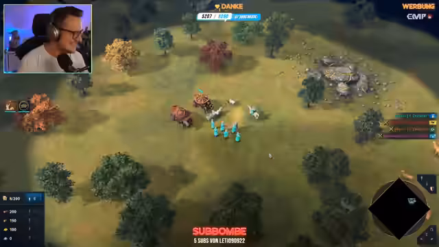 08:47:46Der Streamer erkundet die Spielkarte, um die Positionen der gegnerischen Basen zu identifizieren. Dabei fällt auf, dass Ressourcen wie Holz seltener sind als gewohnt, was die Ressourcenverteilung und das Gameplay beeinflusst. Er stellt fest, dass der friedliche Zustand bisher anhält, und baut kontinuierlich an seiner Basis auf, während er parallel mehrere Aufgaben wie das Bauen von Schmieden und das Verwalten von Einwohnern bewältigt.