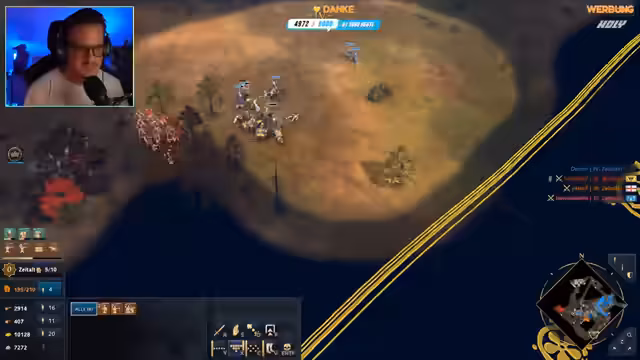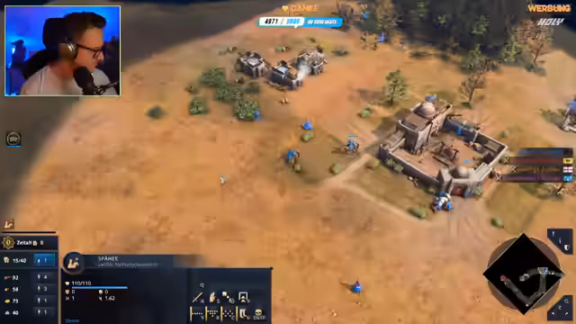 08:38:41Nach den Diskussionen startet der Stream ein Spiel von Age of Empires 4. Mit dabei sind Vivi, Siri und Yassin. Der Streamer erklärt, dass sie alle im Suchtmodus sind und das Spiel regelmäßig zocken werden. Es wird eine neue Karte, die Steppe, ausgewählt und das Spiel beginnt mit hektischem Start. Die Spieler konzentrieren sich darauf, Ressourcen sammeln und erste Gebäude zu errichten. Die Stimmung ist angespannt und freundlich zugleich, da alle Spieler bereit sind, sich im Spiel zu bekämpfen.