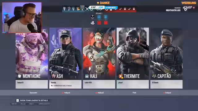 01:42:09Ein Ohrwurm plagt die Teilnehmer, der den Stream begleitet. Gleichzeitig gibt es technische Probleme bei der Geräuschkulisse, da bestimmte Spiel-Sounds nicht abgespielt werden. Dies führt zu einer kurzen Unterbrechung, bei der die Streamer versuchen, die Ursache zu finden und das Problem zu beheben. Die Vorbereitung auf das Spiel Rainbow Six: Siege beginnt, bei der die Taktik und die gewählten Operatoren besprochen werden.