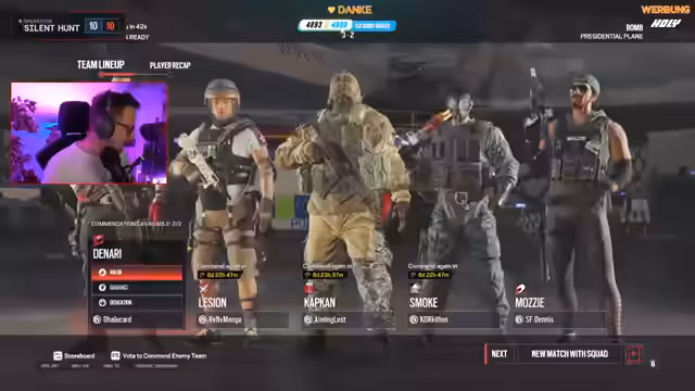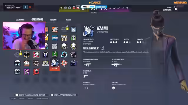 02:55:03Der Streamer startet mit einem technischen Problem, bei dem der Ubisoft Launcher nicht startet. Er berichtet, dies sei trotz vorheriger Tests aufgetreten und äußert die Vermutung, dass eine vorgefertigte Excel-Liste für den Stream gefehlt habe. Anschließend findet eine Vorstellungsrunde statt, bei der sich die Teilnehmer vorstellen. Ein Streamer, denno, gibt an, seit zehn Jahren Rainbow Six Siege zu spielen, während ein anderer, Kitten, seine Karriere ebenfalls mit diesem Spiel begann. Ein weiterer, Südbruch, erwähnt seinen ersten größeren Erfolg mit Rainbow Six-Inhalten im Jahr 2019.