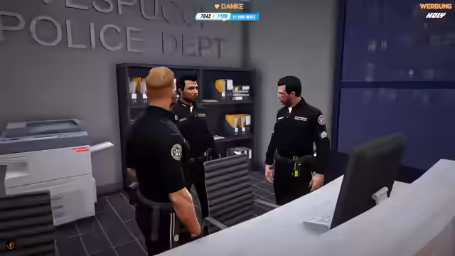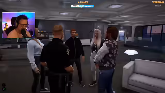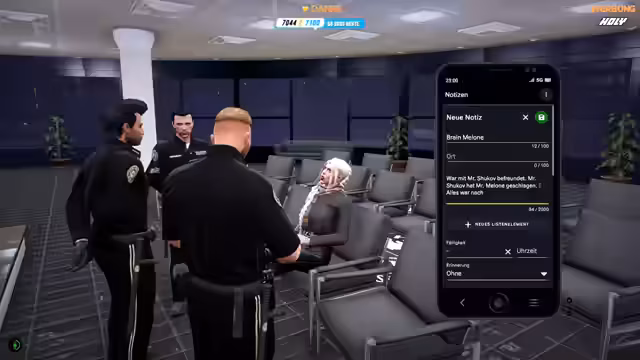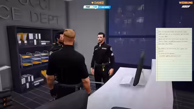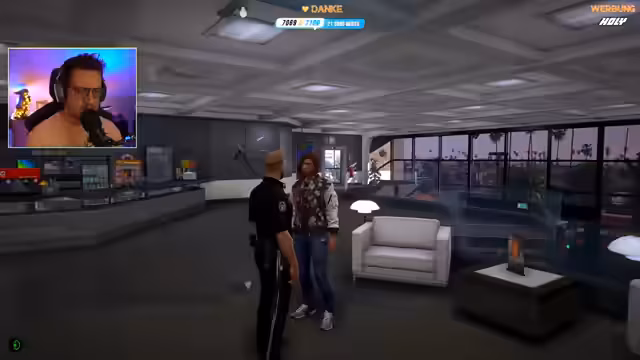 01:56:20Während des Roleplays führt der Streamer ein Bewerbungsgespräch mit einer neuen, rekrutierten Officerin namens Evi Narei. Er stellt ihr persönliche und berufliche Fragen, um ihre Eignung zu prüfen. Gleichzeitig nutzt er die Gelegenheit, um die Community über wichtige Ankündigungen zu informieren. Er weist darauf hin, dass der aktuelle Lucky5Store bald offline geht und warnt vor dem Verlust der bisherigen Merchandise-Artikel. Gleichzeitig kündigt er die Arbeit an einem neuen Shop an und nennt das aktuelle Sub-Ziel von 7500 Subs für einen 10-stündigen RP-Stream.