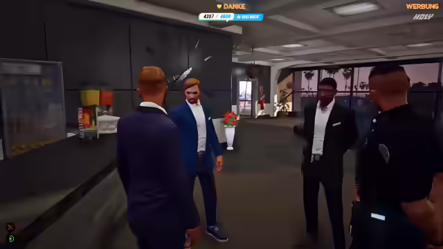 03:41:16Es wurde gefragt, ob der Überblick vom Server gefallen hat. Es wurde erwähnt, dass es einem kalt ist. Es wurde überlegt, zu Bennys zu fahren und zu fragen, ob die das Navi einbauen. Es wurde sich für Subs bedankt. Es wurde erwähnt, dass es nervig ist, dass RP gedodged wird. Es wurde sich beschwert, dass jemand nicht ans Telefon geht, obwohl er eine E-Mail an alle Officer geschrieben hat. Es wurde ein Navigationssystem in ein Fahrzeug eingebaut. Es wurde ein Schlüssel abgegeben. Es wurde gefragt, wie lange das dauert. Es wurde gefragt, wie viel das kostet. Es wurde mit Karte bezahlt. Es wurde ein Ausweis gezeigt. Es wurde erwähnt, dass es Werkstätte mit Hebebühnen gibt. Es wurde auf eine Abholung gewartet. Es wurde erwähnt, dass man die Event-Charaktere aus dem Empty rausholen muss. Es wurde über einen privaten Heli gesprochen.
