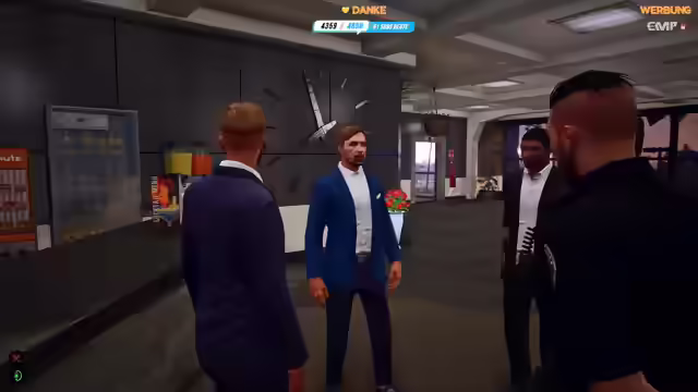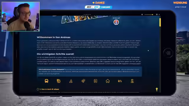 00:49:40Nach bestandener Whitelist und Fragebogen spawnt man in einem Hotelzimmer, wo man Kleidung auswählen und sich mit dem Inventar auseinandersetzen kann. Es gibt Tutorial-Videos für den Einstieg. Durch Drücken von F10 im Spiel erhält man die komplette Tastaturbelegung. Nach der Einreise am Flughafen hilft die neue App auf dem Telefon, die den idealen Einstieg in San Andreas erklärt. Die App bietet einen Überblick über den Server und erklärt die ersten Schritte. Es wird empfohlen, sich Zeit zu lassen und sich gut beraten zu lassen. Nach der Ankunft am Flughafen kann man kostenlos Bus fahren, um wichtige Stationen zu erreichen und Spieler kennenzulernen. Alternativ gibt es Taxis. Ein Konto bei der Maze Bank oder Flieger Banking Game ist wichtig. Jobangebote findet man auf der CASA-Seite oder direkt beim CASA. Einen E-Mail-Account kann man bei Venture erstellen lassen. Das Social Center bietet Kleidung, Essen und Seelsorge für einen perfekten Start. Wohnungen findet man bei Dynasty 8 oder durch Mieten an einem Automaten. Die Faircare Driving School bietet Führerscheine und Erste-Hilfe-Kurse an. Bei Problemen kann man sich an verschiedene Behörden wenden. Es wird empfohlen, die Medien News Open, News Straight Outta Street oder Los Santos Times zu beachten, um über aktuelle Geschehnisse informiert zu sein. Es gibt verschiedene Events wie Tiki Lala, Chemrock Tanzgruppe, Gesprächskreis und Boxkurse.