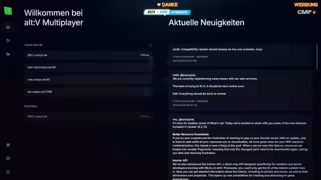 Lucky5.de überarbeitet den Einstieg mit gelockerter Charakter-Story und neuer Ingame-App. Das RDP-System bietet Behörden und Unternehmen vielfältige Funktionen, von Leitstelle bis Flottenmanagement. Das Handy im Spiel bietet zahlreiche Apps, darunter Social Media und Notizen. Spieler können Props platzieren und Wohnungen individuell gestalten. Ein umfassendes Crime-System und diverse Jobs sorgen für Abwechslung.