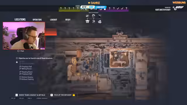 01:30:03Der Streamer plant die nächste Runde und diskutiert über verschiedene Strategien. Er erwägt, Maverick oder Finka zu wählen, um gegen die gegnerischen Stromgeräte vorzugehen. Er beschreibt, wie er versuchen wird, von oben anzugehen, mit einer Seilrunge, um dem gegnerischen Feuer aus dem Weg zu gehen, und dann eine Granate zu werfen, um den Strom zu deaktivieren. Er zeigt sich besorgt über die schwache Verteidigung an bestimmten Punkten der Map.