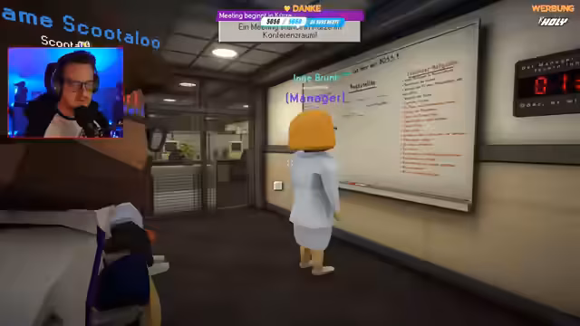 06:58:58Der Manager Pimmelhild ruft ein Meeting ein, bei dem sich die Mitarbeiter über das Arbeitsklima beschweren. Er gibt bekannt, dass Yasin aufgrund seiner Inaktivität gekündigt wird und Scootaloo die Position des Managers übernimmt. Yasin verteidigt sich damit, nur seine Aufgaben als Personalleiter erfüllt zu haben. Scootaloo akzeptiert die neue Rolle, was weitere Verwirrung in den Reihen der Spieler auslöst.