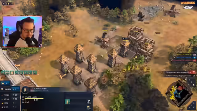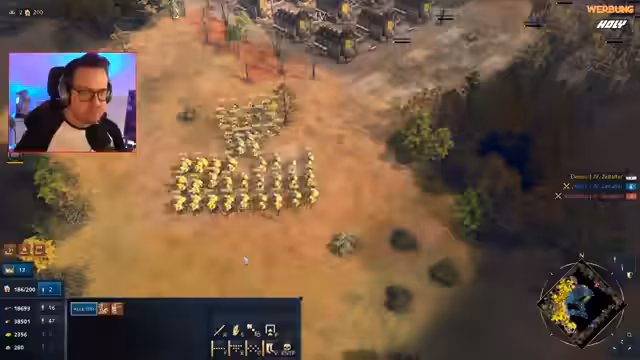 02:42:31Der Stream beginnt mit einem intensiven Age of Empires-Spiel. Ein Spieler namens Yassin ist im Begriff, sein Dorf zu umziehen, was zu hektischen und unkoordinierten Bewegungen führt. Es kommt zu kritischen Missverständnissen im Chat über Positionen und Angriffe. Ein Spieler gibt an, das Spiel nicht ernst genug zu nehmen, was zu einem riskanten und letztlich gescheiterten Manöver führt, das den Gegner direkt in eine günstige Position für einen Flankenangrieb bringt. Das Ressourcenmanagement und der Aufbau der Basis werden thematisiert, wobei einer der Spieler seine Ressourcen effizienter verteilen will.