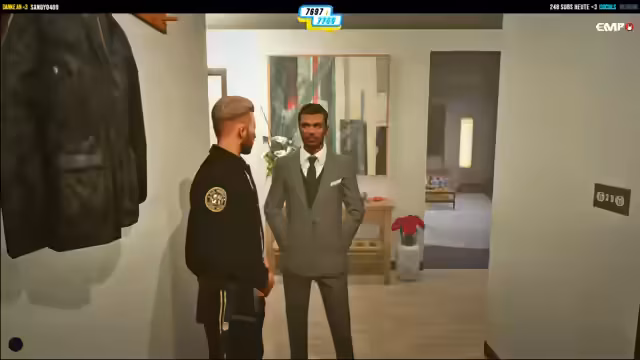 05:15:28Es wird eine persönliche Wette eingelöst, die zu einem Besuch im Friseursalon führt. Eine Streamerin lässt sich die Haare schneiden, um undercover gehen zu können. Um den Prozess zu beschleunigen, werden andere wartende Kunden mit Geld dazu bewogen, zu warten. Die Unterhaltungen mit den Kunden sind humorvoll und beleben die Szene. Der Haarschnitt ist Teil einer größeren Strategie für eine verdeckte Operation.