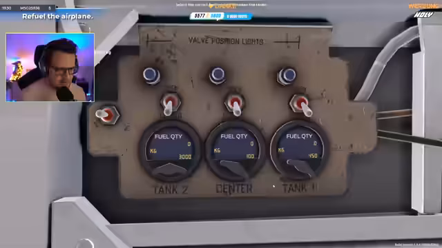 00:25:58Nach der Einführung in das Spiel beginnt der Streamer mit der Abfertigung eines Flugzeuges der Boeing 737. Die erste Aufgabe besteht darin, eine externe Stromversorgung, eine GPU, anzuschließen. Dies gelingt nach einigen manuellen Schritten erfolgreich. Die zweite Aufgabe ist das Betanken des Flugzeuges mit 12.000 Kilogramnen Kerosin. Hier stößt der Streamer auf erhebliche technische Schwierigkeiten. Die Steuerung der Tankpumpe und das richtige Verteilen des Treibstoffs auf die verschiedenen Tanks erweist sich als kompliziert und fehleranfällig. Nach mehrmaligen, erfolglosen Versuchen und einer Rettungsaktion durch einen Neustart des Spiels, verliert der Streamer die Geduld und entscheidet, die Aufgabe zu überspringen.
