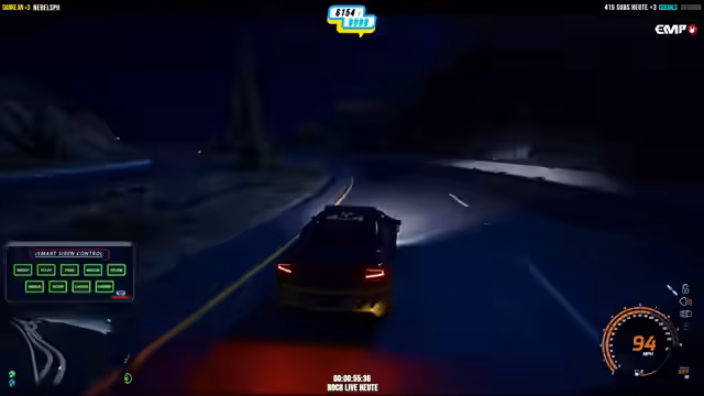 07:49:14Es beginnt mit dem Test eines neuen Megafons am Streifenwagen, um die Verständlichkeit zu überprüfen. Währenddessen werden drei mögliche Raser in Downtown gesichtet, was eine Verfolgungsjagd auslöst. Die Beamten verfolgen die Sportwagen, die sich in Richtung Osten und dann Norden bewegen, vorbei am Mirror Park. Die Verfolgung konzentriert sich auf ein weißes Fahrzeug, während die anderen beiden zeitweise aus dem Sichtfeld verschwinden. Das weiße Fahrzeug versucht, die Beamten auszubremsen. Die Verfolgungsjagd führt in Richtung City, vorbei am Arcadius Tower, wobei die Beamten Verstärkung anfordern, da die getunten Fahrzeuge schwer zu überholen sind. Das weiße Fahrzeug fährt Richtung Norden in eine Unterführung in Downtown. Die Beamten versuchen, das Kennzeichen zu erfassen und setzen die Verfolgung fort, während der Streamer kurz pinkeln geht. Später wird festgestellt, dass das Fahrzeug nicht angemeldet ist. Die Verfolgungsjagd führt im Kreisverkehr um den Legion Square, was als gefährlich eingestuft wird, da die Fahrer sich in Gefahr bringen. Die Beamten fordern die Fahrer auf, rechts ranzufahren, um eine Eskalation zu vermeiden.