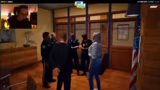 10:44:53Nach Abschluss der Durchsuchung stehen die Polizizen vor den Mitgliedern. Sie machen deutlich, dass die Durchsuchung nur durch die Unehrlichkeit des Festgenommenen möglich wurde und warnen davor, zukünftig einen Anwalt hinzuzuziehen. Den Betroffenen wird eine geringe Strafe angedroht, während die gesamten Funde dokumentiert werden, um zukünftige Ermittlungen zu ermöglichen.