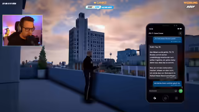 06:02:09Nachdem die Festnahme abgeschlossen ist, kehrt die Kommunikation zur Leitstelle zurück. Es gibt neue Meldungen und Anfragen, wie z. B. eine 1026 (Observierung). Gleichzeitig nutzt der Streamer die Gelegenheit, über bevorstehende Streams und Inhalte für seinen Kanal zu sprechen. Es wird angekündigt, dass ein weiterer 10 Stunden GTA RP Stream freigeschaltet wird, sobald die 5555 Submarke erreicht wird. Die Stimmung ist gelöst und der Streamer fängt mit neuen, alltäglichen Polizeieinsätzen an.