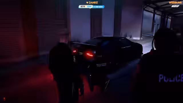 04:19:13Die Polizeistreife fährt um das Flutbecken herum, um das Gelände besser einzusehen. Ein Streifenwagen wird positioniert, um mit einem Scheinwerfer den Ausfahrbereich auszuleuchten. Die Beamten diskutieren über verschiedene Vorgehensweisen, um in die Veranstaltung zu gelangen, von einer einfachen Personenkontrolle bei Ausfahrenden bis hin zu drastischeren Methoden wie dem Einsatz von Rauchgranaten, was jedoch als zu extrem verworfen wird.