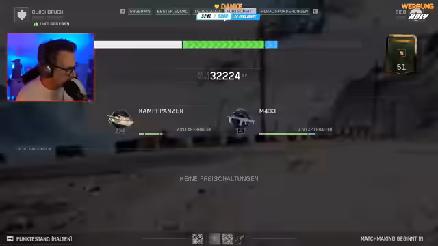 01:08:39Der Streamer freut sich sichtlich über das Eintreffen seines Stream-Partners LaVivi Eskelle. Gemeinsam starten sie eine Runde in Battlefield, wobei der Streamer in verschiedenen Situationen, die sowohl humorvoll als auch frustrierend sind, ums Überleben kämpft und darauf hinarbeitet, seine eigene Spielerstufe von Level 49 auf Level 50 zu bringen. Die beiden interagieren dabei viel und testen unterschiedliche Rollen und Strategien, darunter auch das Führen eines Panzers, das aber auf diverse technische und taktische Schwierigkeiten stößt.