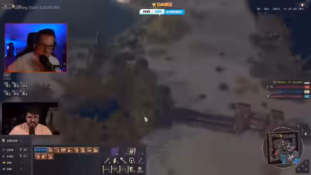 04:04:37Nachdem der Streamer Vivi aus dem Spiel eliminiert hat, ist die eigene Basis geschwächt. Das Team beschließt, gemeinsam gegen den letzten verbliebenen Gegner, Yassin, zu vorgehen. Yassin hat jedoch eine starke Verteidigung mit einer Mauer am Wasser gebaut. Der Streamer ermutigt Yassin, eine vermutete Schwäche bei den gegnerischen Fahrzeugen auszunutzen, doch Yassin zögert. Der Streamer ist frustriert über die mangelnde Aggressivität und sieht eine verpasste Chance für einen klaren Sieg.