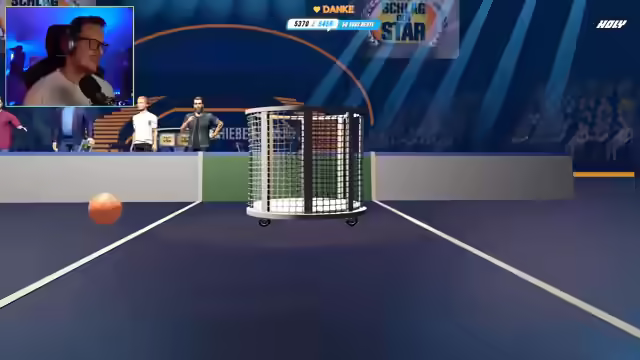 07:28:42Es folgt das Spiel 'Bälleburg', bei dem ein Turm aus Dosen mit einer Tennisballmaschine abgeschossen werden muss. Es müssen alle Dosen vom Tisch herunterfallen. Es wird abwechselnd geschossen und die Schusshöhe und Richtung verändert. Es wird versucht, die Dosen zu treffen und den Tisch leerzuräumen. Es wird kommentiert und angefeuert, um die Dosen zu treffen. Es wird über die richtige Höhe und Richtung diskutiert. Es wird gejubelt, wenn Dosen getroffen werden. Es wird sich gegenseitig angefeuert und Tipps gegeben. Es wird versucht, die letzte Dose zu treffen und den Turm leerzuräumen. Es wird gejubelt, wenn der Turm leergeräumt ist. Es folgt das Spiel 'Memory-Duell'. Es wird festgestellt, dass das Spiel schwer ist.