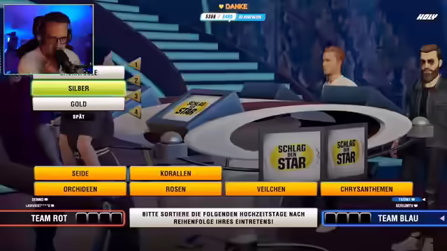 07:11:10Das Team erlebt eine Aufholjagd und gleicht zum 2-2 aus, was die Stimmung hebt. Es wird beschlossen, eine letzte Runde zu spielen. Es wird über die Steuerung des Spiels diskutiert, insbesondere über die Verwendung von W und S zum Werfen des Balls. Es wird festgestellt, dass das Tutorial nicht richtig gelesen wurde. Trotzdem gelingt es dem Team, den entscheidenden Punkt zu erzielen und das Spiel zu gewinnen. Die Freude über den Sieg ist groß und es wird gefeiert. Es wird betont, dass es um die Ehre ging und dass es wichtig war, Seri in die Schranken zu weisen. Es folgt das nächste Spiel, bei dem Hochzeitstage nach Reihenfolge ihres Eintretens sortiert werden müssen. Es stellt sich heraus, dass das Wissen über Hochzeitstage begrenzt ist, was die Aufgabe erschwert. Es wird geraten und spekuliert, um die richtige Reihenfolge zu finden. Trotz der Schwierigkeiten gelingt es, einen Punkt zu erzielen.