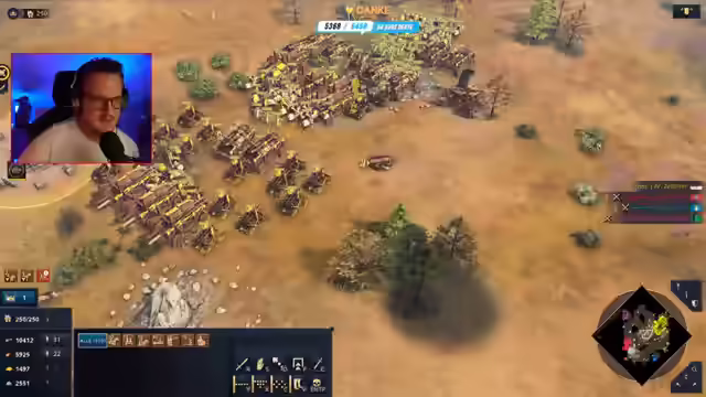 02:46:49Eine neue Runde Age of Empires beginnt mit dem Ziel, einen bestimmten Spieler zu eliminieren. Es werden Neckereien ausgetauscht und über verschiedene Völker und deren Vor- und Nachteile diskutiert. Es wird über die Spielweise einzelner Teilnehmer gesprochen, insbesondere über die Vorliebe für bestimmte Einheiten und Taktiken. Es wird über die Aufteilung der Ressourcen und die Positionen der Spieler auf der Karte gesprochen. Es kommt zu kleineren Auseinandersetzungen und Sticheleien zwischen den Spielern, insbesondere wenn es um den Besitz von Gold geht. Es wird über die Bedeutung von Teamwork und die Notwendigkeit, Allianzen zu bilden, diskutiert. Einige Spieler werden für ihre defensiven Taktiken kritisiert, während andere für ihre aggressiven Angriffe gelobt werden. Es wird über die Schwierigkeit gesprochen, den Überblick über alle Aspekte des Spiels zu behalten und die richtigen Entscheidungen zu treffen. Die Spieler tauschen sich über ihre Strategien und Taktiken aus und versuchen, die Schwächen ihrer Gegner auszunutzen.