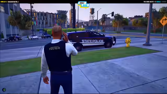 06:20:29Nach einer Patrouillenfahrt wird ein verdächtiger Fahrer am Leschen Square wegen Falschparkens kontrolliert, was zu einer hitzigen Auseinandersetzung führt. Anschließend fahren die Polizisten zu Crazy Cuts, da es dort ebenfalls Probleme mit einem Kunden gab. Nach dieser kurzen Einheit fahren sie Richtung Vespucci. Einmal erhalten sie auch einen Funkruf, dass ein Auto in Richtung Norden überführt wird. Die Patrouille wird aber weiter fortgesetzt.
