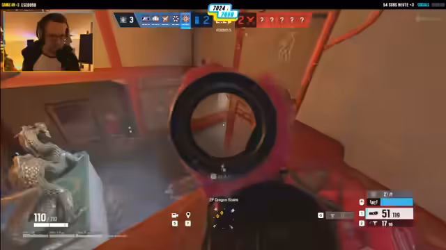 07:37:50Nach der Beendigung des GTA-Events fährt der Streamer zu den Jetty Apartments und stempelt sich aus. Der Fokus verlagert sich vollständig auf Rainbow Six Siege. Der Streamer testet verschiedene Operatoren wie Ash und Kapkan. Er beklagt High-Ping-Probleme im Gegner-Team und merkt an, dass das Gameplay seit DirectX-12-Updates flüssiger geworden ist.