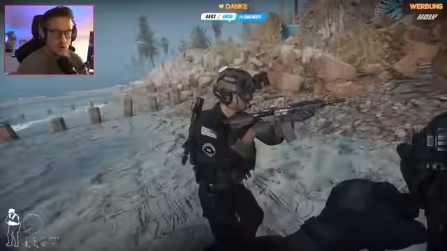 02:52:54Das Team plant, langsam vorzugehen, entdeckt aber schnell einen Terroristen auf der Treppe. Nach einem Schusswechsel wird dieser ausgeschaltet. Es wird vermutet, dass sich weitere Terroristen auf dem Kran befinden. Die Spieler sichern Waffen als Beweismittel und finden Geiseln, die sie befreien. Ein vermeintlicher Zivilist entpuppt sich als bewaffneter Terrorist mit einer Schrotflinte, was zu einem überraschenden Angriff führt. Das Team wird überrumpelt und stirbt, was einen Neustart erforderlich macht. Es wird beschlossen, zusammenzubleiben und vorsichtiger vorzugehen, um nicht in Panik zu geraten. Die Zivilisten sind Mitarbeiter der Ölbohrinsel, und die Terroristen haben sich als solche verkleidet. Die kollektive Planetenfront (KPF) aus den 80er Jahren ist gut bewaffnet. Der Helikopter gibt Aufklärung über Terroristen auf dem Kran. Es wird eine Strategie diskutiert, ob von unten nach oben oder umgekehrt vorgegangen werden soll. Ein erster Terrorist wird entdeckt und ausgeschaltet. Es wird beschlossen, von außen nach innen vorzugehen. Ein Teammitglied wird getötet, was zu einem weiteren Neustart führt. Der Streamer erklärt, dass beim Festnehmen von Personen ein Teammitglied den anderen absichern muss. Die Positionen der Gegner ändern sich bei jedem Neustart. Es wird erklärt, wie man den Feuermodus der Waffe ändert (X-Taste).