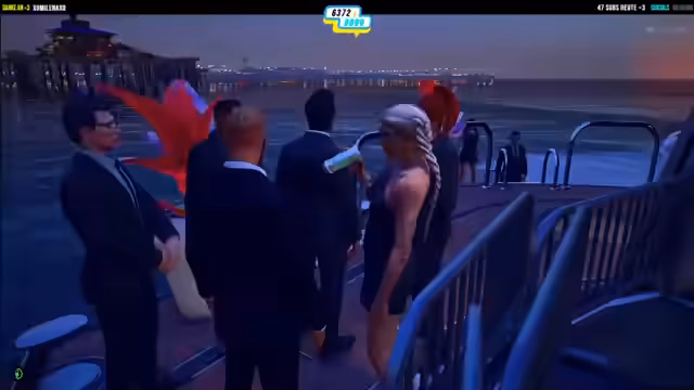 07:52:43Es war eine friedliche Stimmung, alle haben getanzt, Spaß gehabt und gelacht. Folie musste sich wieder profilieren und ist von der Reling gesprungen. Er bekommt eine Haltungsnote von 7,5. Es wird überlegt, ob ein Helikopter für den Abtransport geholt werden soll, aber es ist kein Pilot da. Es wird beim PD nachgefragt, aber es gibt keinen Helikopter. Es wird angesagt, dass der Police Commissioner und die First Lady Commissioner nicht mit dem Helikopter abgeholt werden. Es wird überlegt, eine Bombe zu zünden und dem Typen das zu erzählen. Es wird sich hinten angestellt und dann mitgenommen. Es wird sich für die gute Arbeit bedankt. Es wird nach Hause gefahren und San Andreas State Police gerufen. Es wird sich überlegt, wie man rennen kann, aber es ist zu schwer. Der Folie macht den Anfängerfehler und setzt sich zu früh ab. Es wird über den Einsatz am Land gesprochen und dass die Verantwortlichen interne sind. Es wird das VIP-Fahrzeug von den Marshalls genutzt. Es wird über Dance-Moves gesprochen. Es wird an einen Brand erinnert, als man sich mit Frau Dingsbums angelegt hat.