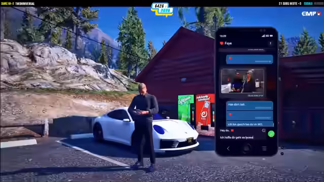 04:53:31Es wird die Geschichte von Jakob und Alex erzählt, deren Beziehung nach anfänglichen Schwierigkeiten und einem kurzzeitigen Verschwinden von Alex schließlich in einer spontanen Hochzeit mündet. Die Feierlichkeiten finden ein Jahr später statt, wobei die Gäste die ungewöhnliche, aber liebevolle Beziehung des Paares würdigen. Jakob und Alex halten Reden, in denen sie auf ihre gemeinsamen Abenteuer und Erlebnisse zurückblicken und ihre Hoffnung auf eine lebenslange, verrückte und unkonventionelle Beziehung zum Ausdruck bringen. Es wird betont, dass Karma eine wichtige Rolle in ihrer Beziehung gespielt hat und dass sie sich auf die gemeinsame Zukunft freuen. Die Hochzeitszeremonie wird mit der Frage nach dem freien Willen zur Eheschließung und der anschließenden Erklärung der rechtmäßigen Verbindung durch den Staat Los Santos und San Andreas abgeschlossen. Nach der Zeremonie werden die Gäste zu einem Geschenketisch und zu Speisen und Getränken eingeladen, während DJ Moser für die musikalische Unterhaltung sorgt. Ein Feuerwerk ist für später am Abend geplant. Es wird ein Geschenk von Fowly überreicht, und die Gäste versammeln sich, um dem Brautpaar zu gratulieren und ihre Glückwünsche auszusprechen.