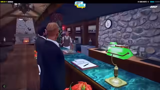 02:30:48Es wird über das Crashen einer Hochzeit gescherzt, wobei betont wird, dass man sich benehmen sollte. Die Gruppe diskutiert über das Trio Infernal und den Verbleib von Old Tramplay. Ein Sammelpunkt wird verworfen, da eine Teleportation geplant ist. Es folgt eine Anekdote über gestrige Ereignisse auf einer Baustelle, wo Kollegen auf dem Dach standen und halfen, während jemand mit einem Bagger Schutt beseitigte. Plötzlich begegnen sie einer Frau mit einem Motorradunfall, die sie zur Fahrschule bringen. Dabei stellen sie fest, dass die Fahrschule Fahrsimulationen anbietet. Ein Cowboy vom Sicherheitsdienst wird angetroffen, und es wird nach dem Zeitplan der Trauung gefragt. Ein Gespräch mit Bruno vom Brunos Pitstop folgt, der für die Musik zuständig ist. Anschließend wird überlegt, mit einer Privatjacht vorzufahren, was jedoch aufgrund von Ankerproblemen verworfen wird. Das Ziel ist, Faye in Palito abzuholen, eventuell mit der Air 2 oder Gautier mit der Air 1. Es wird ein Gespräch mit Andy wegen Yonte erwähnt und die Erwartung von Konsequenzen, da Monsieur Berg interne Informationen weitergegeben hat.
