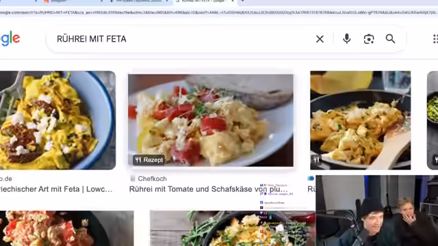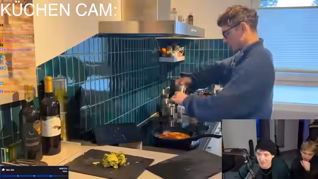 00:07:10Der Stream beginnt mit den hohen Erwartungen an ein perfektes Rührei von Heiko. Der Streamer kommentiert präzise Heikos Zubereitungsschritte, darunter das Schneiden von Zwiebeln und das Rühren des Eies. Heiko kredenzt ein Rührei mit Tomaten, Zwiebeln, Avocado und Chili-Salz, während der Streamer den Chat nach seinem eigenen perfekten Rührei befragt und Feta-Käse als bevorzugte Zutat nennt.