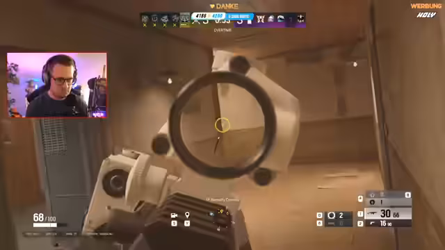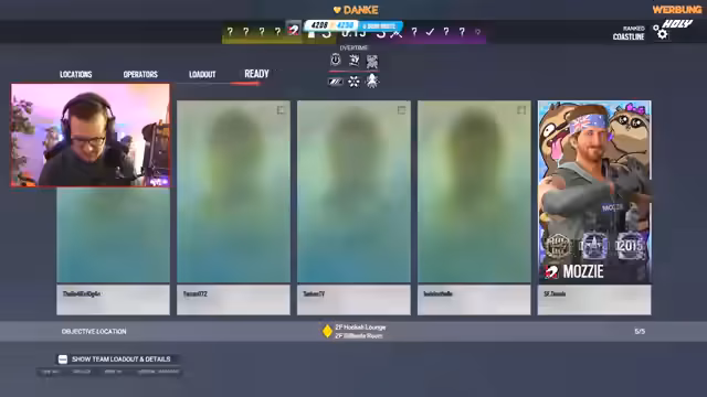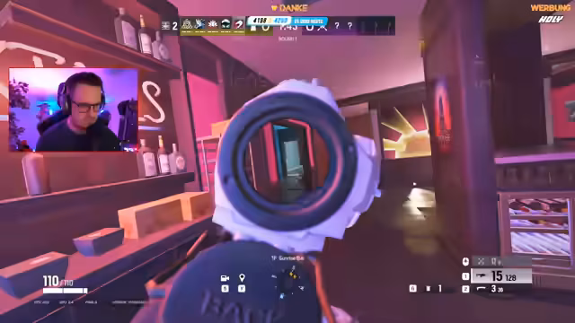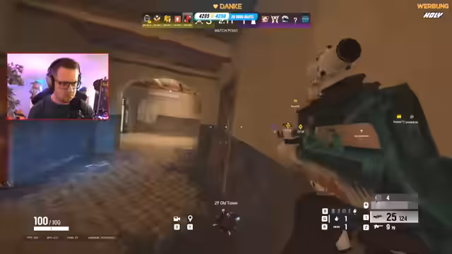 00:36:58Das Gameplay wird intensiver und taktischer. Der Streamer plant gemeinsam mit seinem Team den Einsatz von Gadgets wie Montys Diffuser und Claymores, um bestimmte Einstiege zu verteidigen. Es kommt zu mehreren knappen Runden, in denen das Team durch strategische Entscheidungen und manchmal auch durch Glück Siege einfährt. Das gegnerische Team wird als sehr koordiniert und stark eingestuft.